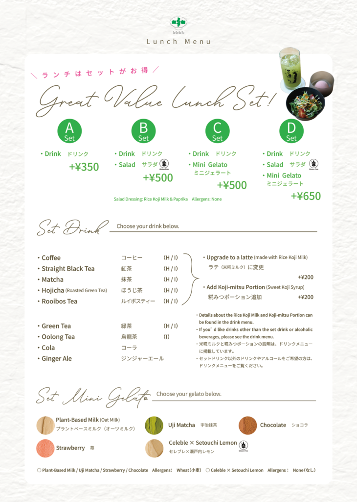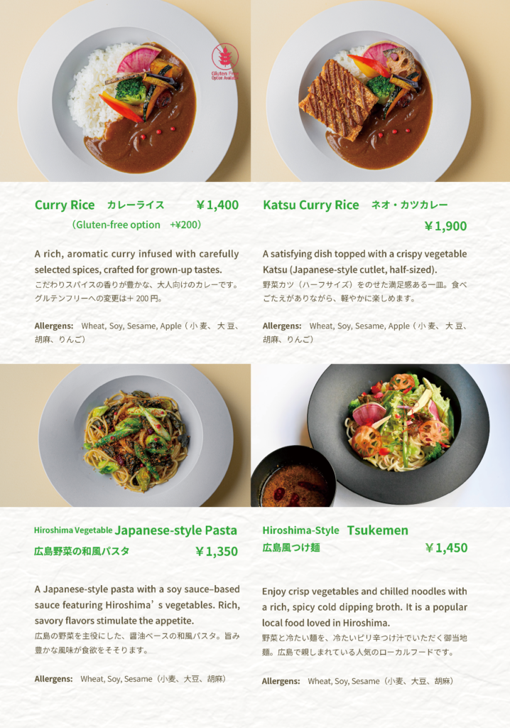 ※[GF]……グルテンフリー(料理には小麦を使用していませんが、同一厨房内で小麦を扱っています)。
